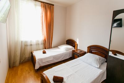 Расположен в уютном месте, для гостей приготовлены комфортные одно и двух комнатные номера со своими и общими кухнями, которые… оснащены всем необходимым. Все номера оборудованы холодильниками, телевизорами, кондиционерами.